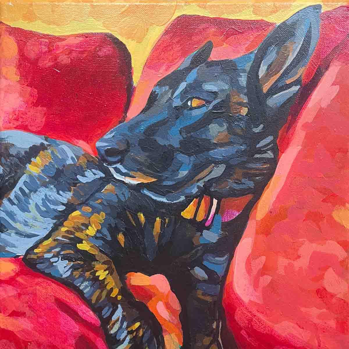 “I’ve always wanted a portrait of my dog that felt personal—not just a generic print of the breed. Kat absolutely nailed it. She captured my pup’s goofy spirit and lovable quirks in a way that makes me smile every time I look at it. It’s not just art—it’s him.”